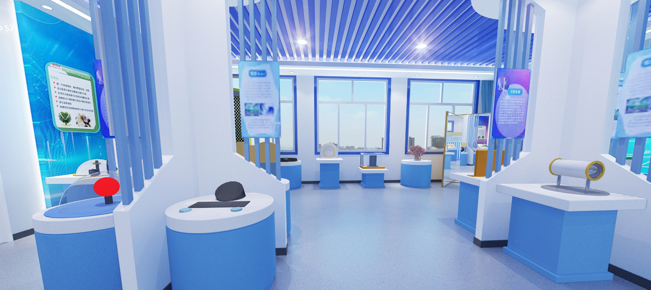 中學(xué)生容易接受的顏色已從暖色向冷色慢慢轉(zhuǎn)變,我們一般采用淺藍(lán)、橘黃、乳白等顏色為主色調(diào),色澤光潔如鏡,展廳藝術(shù)夢幻,展臺造型獨(dú)特,形成了科學(xué)和藝術(shù)相結(jié)合的濃厚氛圍。