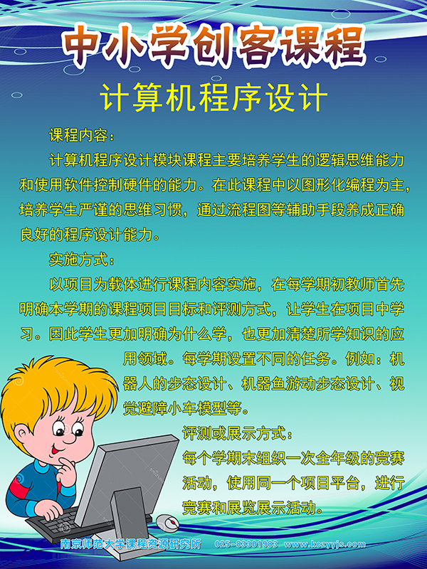 課程內(nèi)容:計(jì)算機(jī)程序設(shè)計(jì)模塊課程主要培養(yǎng)學(xué)生的邏輯思維能力和使用軟件控制硬件的能力。