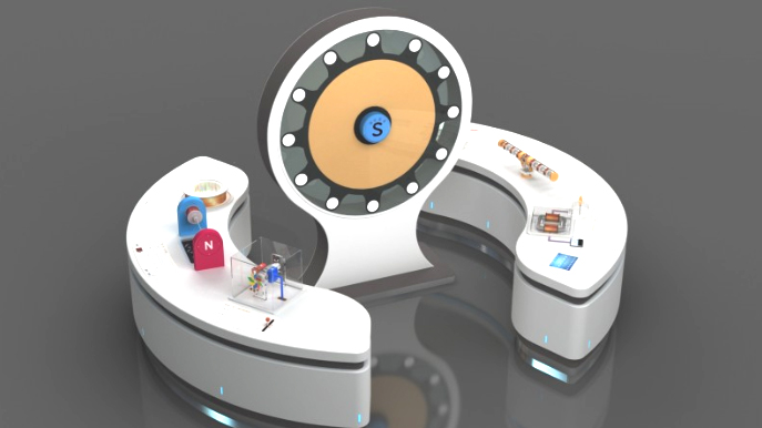 功能概述:此展項(xiàng)由可旋轉(zhuǎn)的轉(zhuǎn)臺(tái)、固定在旋轉(zhuǎn)臺(tái)上的演示裝置等構(gòu)成。通過(guò)互動(dòng)展示,讓觀眾了解離心現(xiàn)象。觀眾轉(zhuǎn)動(dòng)手輪驅(qū)動(dòng)轉(zhuǎn)盤轉(zhuǎn)動(dòng),可以發(fā)現(xiàn)由于離心力的作用,透明水箱中的液面發(fā)生了變化,中間低兩頭高。