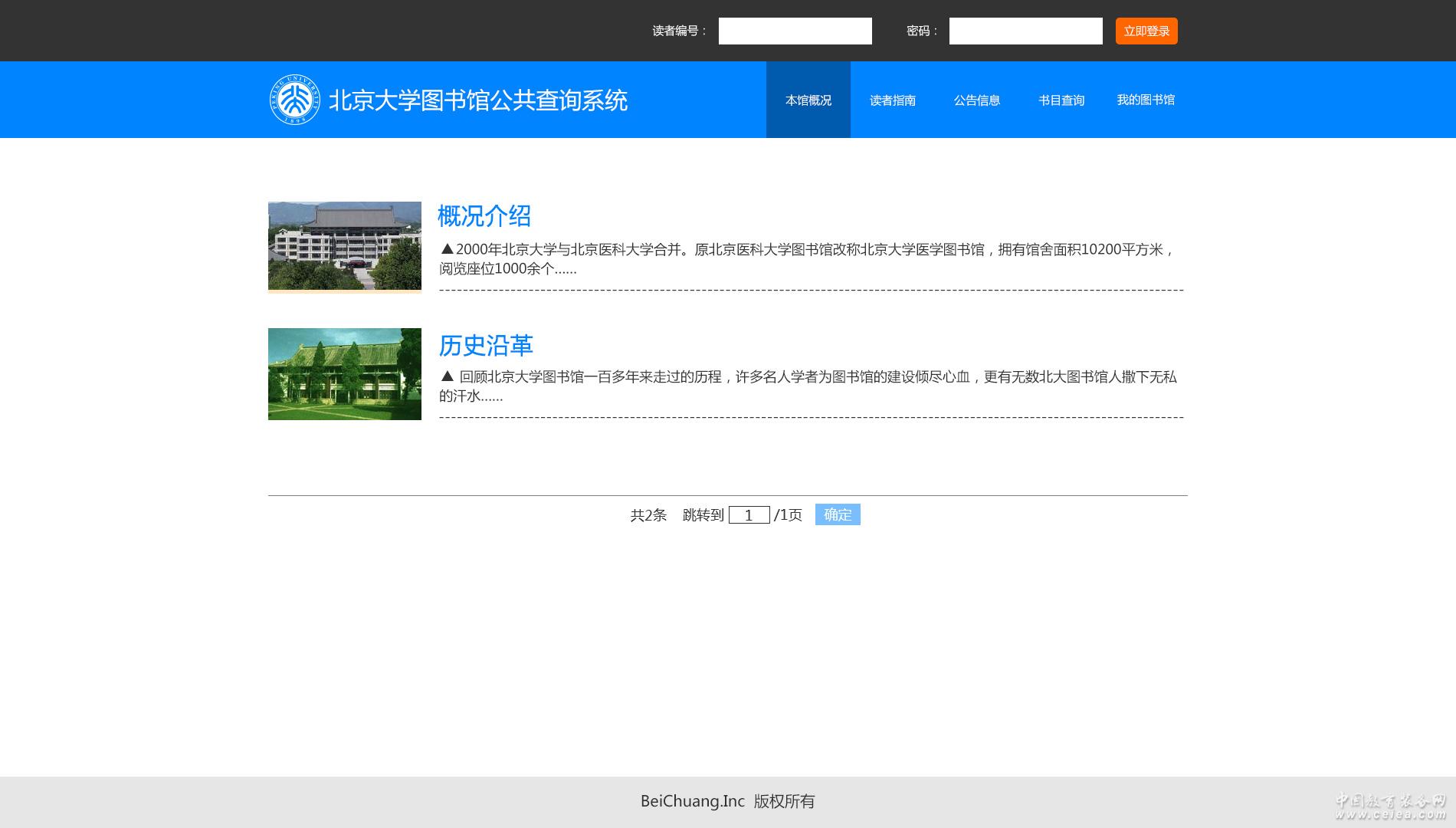 在服務器安裝本查詢系統后,讀者即可通過IE瀏覽器訪問查詢系統,在查詢系統上可了解圖書館介紹,查看最新公告,進行目錄查詢,登入后還可瀏覽自己的借閱,借閱流水,預借等信息,還可更改自己的帳號密碼。本查詢系統必須結合《瑞天圖書管理系統旗艦版》最新版使用.