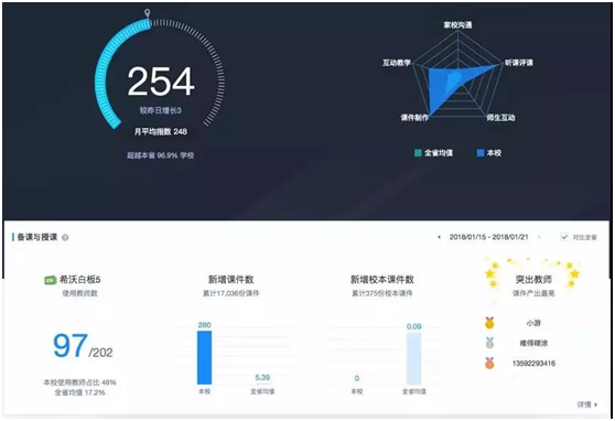 在培訓的最后,各位校長也親身體驗了案例中提到的希沃教學與管理的軟硬件,其中希沃信鴿更是受到了校長們的廣泛關注。在教育信息化深化發展階段,希沃信鴿無疑為校長們進一步推動教育信息化發展提供了巨大的想象空間,它能智能地整理、分析及可視化呈現希沃軟硬件靜默采集的教師教學過程小數據和學生成長數據,讓校長可以更清晰地了解到教師的教學情況和學生的學習情況,為學校的管理決策分析提供了客觀依據。這對進一步提升教育信息化水平,促進教學及教師專業成長起到了很好的統籌和帶動作用。
