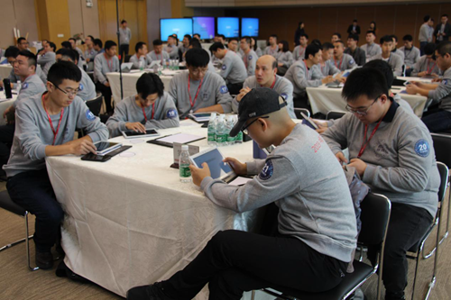 第一關——巔峰競答環節,包含必答題與搶答題。面對必答題,從八大區域選出的“高手們”成竹在胸,輕松自如地一口氣選出心中答案。輪到搶答環節,現場緊張氣氛急速上升,工程師們屏住呼吸,緊盯住面前的希沃學生平板,眼疾心明手快地“解鎖”難題。