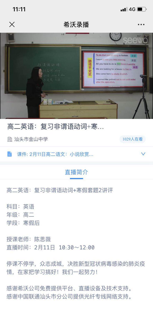 新型冠狀病毒肺炎疫情在全國肆虐,全面反擊的號角已經吹響,全國人民眾志成城攜手抗疫。為響應教育部“停課不停學”的精神,廣東汕頭金山中學借助希沃錄播開啟了網絡直播課堂。