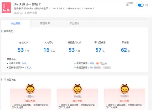 “教師能夠在作業報告中看到每個學生完成作業的用時快慢,掌握知識的情況。對于已交的作業和未交的作業的學生,能夠一目了然,很大地減輕了老師的工作任務。”作為英語老師的趙老師同樣感受到作業報告功能對她教學的幫助。
