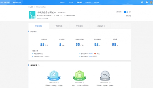 “我們班上有55個(gè)學(xué)生,在以往,每次手動(dòng)批改作業(yè),我都要耗費(fèi)好多時(shí)間。”趙老師說:“可是這一次,使用希沃易課堂的‘自動(dòng)批改’功能,批改作業(yè)的效率一下子就提高了,20分鐘就可以批改完畢。而且希沃易課堂自動(dòng)生成的‘作業(yè)報(bào)告’,讓我更清楚掌握孩子們在家學(xué)習(xí)情況,我可以把更多時(shí)間花在如何幫助孩子們查漏補(bǔ)缺上。”