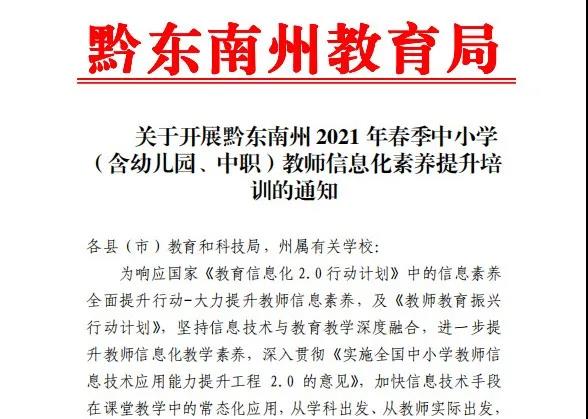 又到開學季,教學有序開展,成為各地學校工作的重中之重。為了指導教師利用信息化教育資源和平臺合理開展教學,促進新媒體新技術在教學中的有效應用,提升全州中小學及幼兒園教師信息化教學應用水平,黔東南州組織教師開啟了線上“充電”模式。本次培訓課程效果顯著,不僅提高了老師的信息化教學能力,也收獲了老師們的一致好評。
