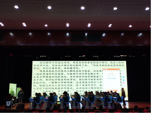 在課前學(xué)生分享環(huán)節(jié),有學(xué)生積極上臺(tái),分享歷史人物周恩來的生平事跡。在希沃易課堂功能的加持下,學(xué)生變成了智慧課堂小老師,帶領(lǐng)同學(xué)們暢游知識(shí)的海洋。