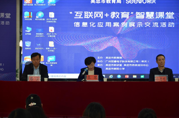 。此次舉辦‘互聯(lián)網(wǎng)+教育’智慧課堂信息化應(yīng)用案例展示交流活動,就是希望能夠進(jìn)一步促進(jìn)我市教育信息化‘互聯(lián)網(wǎng)+教育’工作更好更快的發(fā)展,感謝希沃舉辦本次活動,預(yù)祝本次活動圓滿成功,期待‘互聯(lián)網(wǎng)+教育’智慧課堂在吳忠市遍地開花,實現(xiàn)常態(tài)化應(yīng)用,最后祝大家學(xué)習(xí)順利。”
