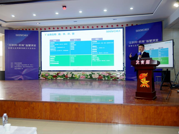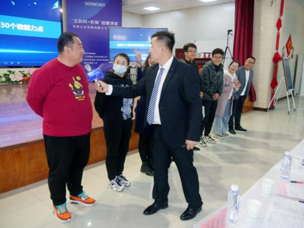 希沃寧夏區(qū)域售前顧問米建輝匯報了希沃年度最新產(chǎn)品,聚焦課堂書寫的希沃交互智能平板高精度紅外系列、突破傳統(tǒng)廣播局限的希沃區(qū)校一體化廣播系統(tǒng)、讓黨群服務(wù)工作與新時代需求并行的希沃智慧黨建解決方案、聚焦互聯(lián)互通教室環(huán)境打造的希沃物聯(lián)平臺等,涵蓋課堂互動應(yīng)用、校園文化展示、教學(xué)形態(tài)創(chuàng)新等多個應(yīng)用層面。