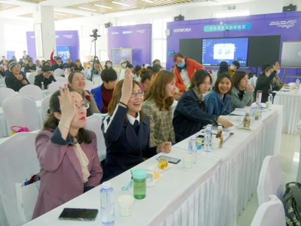 馬水泉提到,信息技術(shù)應(yīng)用能力是新時代高素質(zhì)教師的核心素養(yǎng),提倡老師們建立以學(xué)生為中心的互動課堂,并從“生成式教學(xué)”、“參與式教學(xué)”、“情景式教學(xué)”、“及時反饋”、“移動式教學(xué)”幾大教學(xué)方式詳細(xì)示例說明,老師們積極參與互動,現(xiàn)場氣氛一度推向高潮。