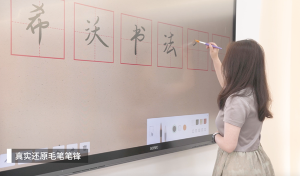 希沃交互智能平板高精度紅外系列通過超高精度觸控,搭配應(yīng)用軟件實(shí)現(xiàn)升級(jí)版書法模式、超細(xì)筆書寫和手筆分離等功能,為教師帶來更自然的書寫體驗(yàn),為美術(shù)、書法等藝術(shù)類智慧課堂提供全新的交互教學(xué)體驗(yàn)。