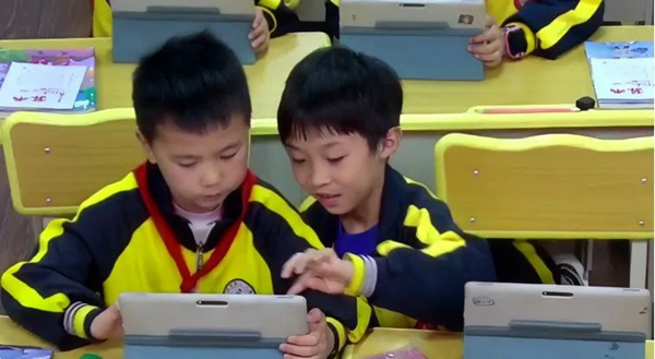 語文課上,在初讀課文后,為了強化生字詞學習,李老師將設計的教學活動任務推送至學生平板端,學生們隨即全員參與到生字詞認讀游戲中,動口朗讀識記,學生們興趣盎然,積極發(fā)言。聶老師則巧妙地將學生規(guī)范書寫的訓練,用學生平板拍照上傳進行展示。學生們知道自己的書寫練習會呈現(xiàn)在班級的教學一體機上,動手書寫的時候格外認真投入。此外,在數(shù)學的學習中,袁老師根據(jù)互動答題中學生的學習反饋數(shù)據(jù)及時掌握學生學情,針對學生薄弱點及時精講點撥。