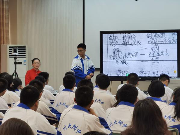 為深入貫徹落實(shí)《教育部關(guān)于公布“基于教學(xué)改革、融合信息技術(shù)的新型教與學(xué)模式”實(shí)驗(yàn)區(qū)名單的通知》文件精神,進(jìn)一步加強(qiáng)成都市“國(guó)家級(jí)信息化教學(xué)實(shí)驗(yàn)區(qū)”建設(shè),成都市教育局召開了國(guó)家級(jí)信息化教學(xué)實(shí)驗(yàn)區(qū)教學(xué)研討會(huì)。本次研討會(huì)特別邀請(qǐng)了湖南省長(zhǎng)沙市長(zhǎng)郡中學(xué)語(yǔ)文組肖楊老師,來(lái)到四川大學(xué)附屬中學(xué)進(jìn)行公開課展示及研討分享。