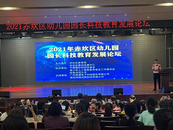 為了加強赤坎區(qū)幼兒園科技教育建設(shè),提高區(qū)內(nèi)各幼兒園園長的科技教育意識、技術(shù)和水平,5月12日上午,赤坎區(qū)教育局和區(qū)教師發(fā)展中心,聯(lián)合中國國際科技促進會青少年人工智能教育普及工作委員會、嶺南師范學(xué)院,在華南師范大學(xué)附屬湛江學(xué)校,成功舉辦了2021年赤坎區(qū)幼兒園園長科技教育論壇。科促會智工委湛江中心吳華主任出席并主持了本次論壇,赤坎區(qū)一百多所幼兒園,近二百名園長和骨干教師,參加了本次論壇活動。