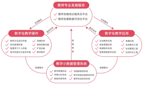 希沃以教學硬件設備為基礎,深化教學應用體系,打通教學環節模塊,對教學小數據進行無縫采集,最后通過可視化呈現、分析小數據,輔助教學管理決策,助力教學優化,幫助教師實現專業發展。