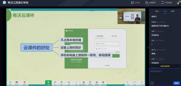 8月18日為培訓的第一階段,希沃講師趙自信老師通過希沃錄播直播功能,在線為老師們直播培訓,培訓內容圍繞《希沃白板基礎使用》、《班級管理》、《微課錄制實用技巧》以及《線上研修班開班儀式》四個不同版塊展開。