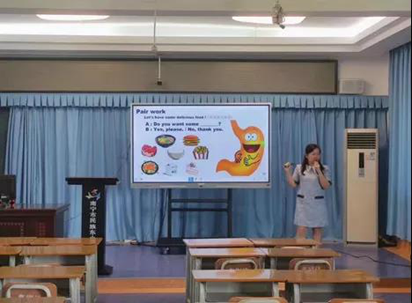 接著,龍安區(qū)的老師們連線廣西南寧陳穎老師共同研討小學(xué)英語《1+1小學(xué)英語同步互動專遞課堂》專題講座,一堂跨越千里的名師示范課,結(jié)合同步板書、同步游戲、拍照上傳等互動功能,讓龍安區(qū)的老師們大開眼界:“原來專遞課堂還能這樣上!”。