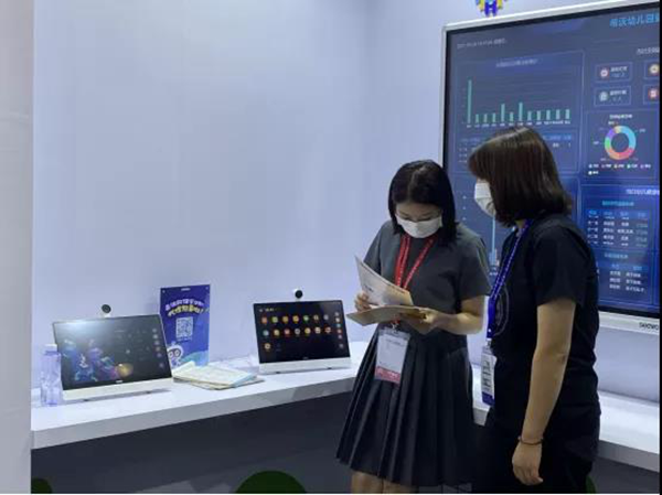 “其中健康管理方案是本次展會著重展示的解決方案之一,它可以幫助幼兒園構(gòu)建“預防,跟蹤,指導”三位一體的健康管理體系,借助智能硬件和軟件的收集和跟蹤分析,健康管理系統(tǒng)可以幫助幼兒園建立電子健康檔案從而防范健康風險、減少幼兒發(fā)病率等...”希沃講解人員向觀展者們詳細介紹了這四大管理模塊的內(nèi)核功能與設(shè)計初心,吸引了許多觀眾駐足,現(xiàn)場人們觀展的熱情持續(xù)進行中。