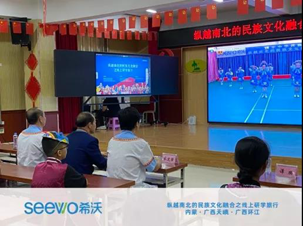 作為此次活動的協辦方,希沃充分發揮自身技術,提供全程技術與設備支持,確保分會場直播活動順利進行。通過希沃錄播搭建南北不同民族文化的交流橋梁,將千里之外的三所民族小學連接起來,以“同步課堂”模式,齊聚在同一課堂上,讓學生通過線上平臺充分展示本地民族文化特色,同時學習了解異地民族文化特色,幫助學生拓寬視野,體驗絢爛多彩的民族文化魅力,促進各民族之間的溝通交流。