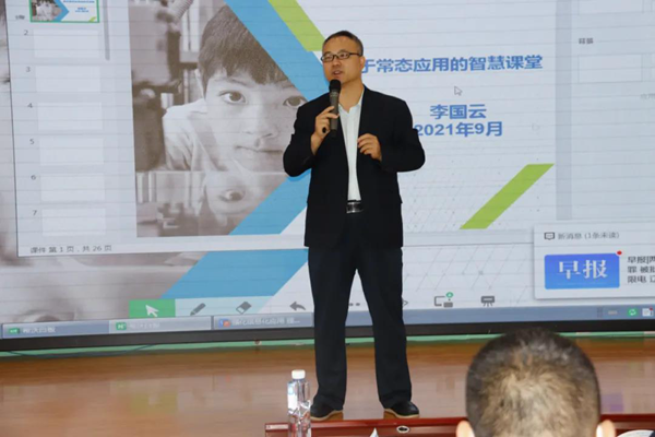 本次活動希沃還邀請了歆云教育創(chuàng)始人、北京師范大學智慧學習研究院特聘專家、希沃教育研究院高級教學顧問李國云教授做專題講座《聚焦常態(tài)化應用的智慧課堂》。李教授以獨特的視角,詮釋了“互聯網+教育”的內涵,對智慧課堂的構建進行了精彩解讀,為參會教師在“互聯網+教育”工作中打開了一扇新的大門。