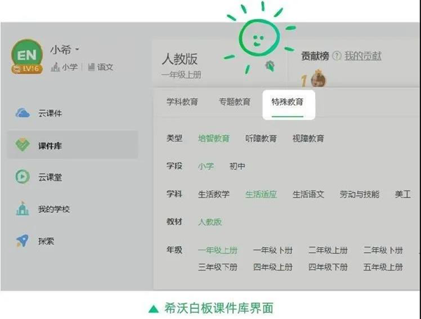 為更全面地賦能教育新基建,2021年,希沃備授課一體化軟件希沃白板針對特殊教育開放資源共享入口,邀請全國特教老師共同參與課件庫的打造,為特殊教育的孩子共創更生動、易吸收的信息化課堂,填補特殊教育信息化資源缺口。