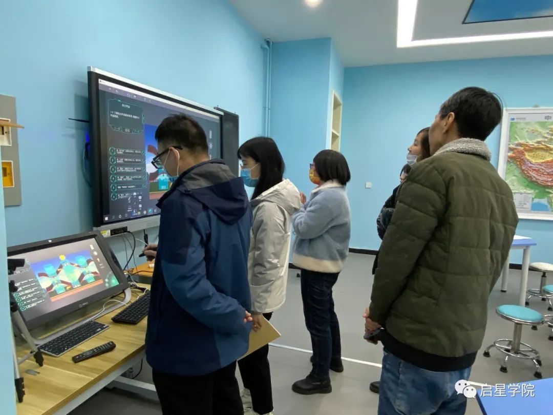宿州二中的設備主要有交互地圖教學系統、AR沙盤、語音立體地形圖、啟星VR移動課堂等。老師們對啟星VR移動課堂尤其感興趣,反饋說,常規課堂更多的是在班班通教室授課,有了這個VR筆記本加上可移動的圖課云平臺里面的資源,在常規課堂也可以用新穎的方式給學生呈現抽象的知識了。