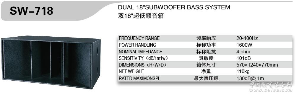 產品詳細介紹頻率響應20-400HZ,標稱功率1600W,標稱阻抗4OHM,靈敏度101DB,箱體尺寸570*1240*770,凈重110KG,最大聲壓級130DB。