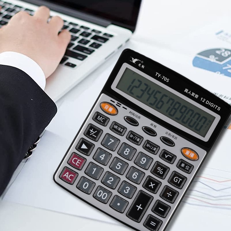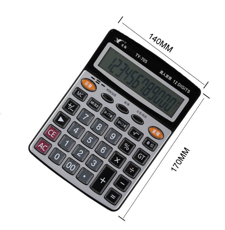 TY-705真人發(fā)音12位數(shù)金屬面板臺(tái)式計(jì)算器
