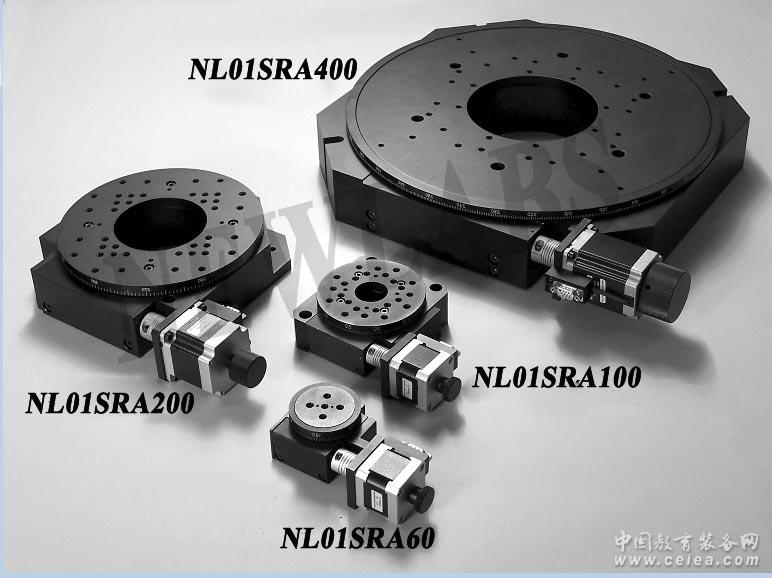型號 NL01SRA60 NL01SRA100 NL01SRA200 NL01SRA300 NL01SRA400 臺面直徑(mm) 60 100 200 300 400 傳動比 90:1 180:1 180:1 270:1 720:1 分辨率 0.0003° 0.0002° 0.0002° 0.0001° 0.000039° 重復定位精度 <0.01° <0.005° <0.004° <0.0035° <0.003° 最大速度 50°/s 25°/s 25°/s 12.5°/s 6°/s 步進電機(1.8°) 42 57 最大靜轉(Ncm) 40 40 80 80 80 最大中心負載 30 50 60 70 80 自重(kg) 0.9 1.8 7.2 13.5 37.5 備注 應用于真空環境中,需單獨訂貨