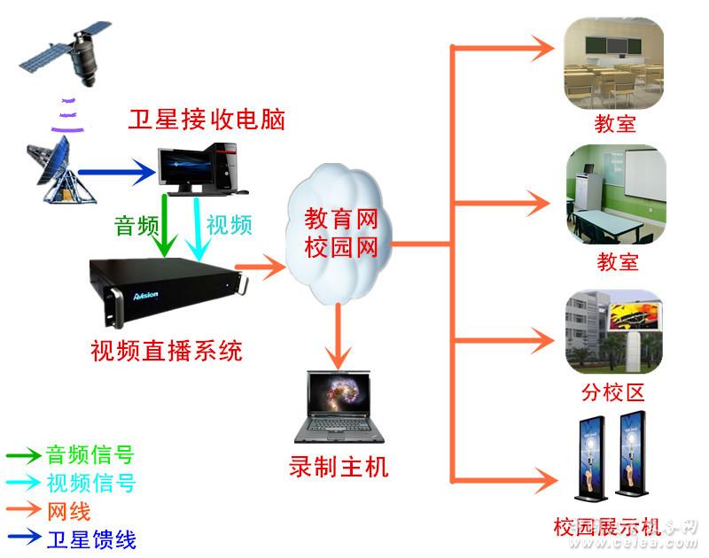 取代傳統(tǒng)的衛(wèi)星接收模式,讓各個課室借助校園網平臺,就能觀看衛(wèi)星電視節(jié)目。