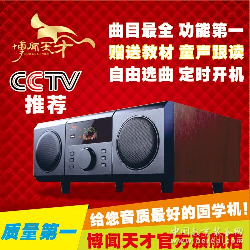 產品詳細介紹 國學機是一款專為幼兒國學教育研制開發的兒童國學早教機,集早教機、胎教機、國學機、故事機為一體的兒童早教機學習產品,由國學大師王財貴教授強烈推薦。 1、國學機內容 博文天才聽讀機內容匯集古今中外經典文化精髓,其中包括經典國學教材、中外古典音樂,古詩詞傳統吟誦以及左右腦全能音樂等,還包括莎士比亞英文經典名著、中英文圣經故事(包含英語發音和美式發音),德育故事、通話故事、中英文兒歌、百科知識等幾千個高品質語音教材 2. 國學聽讀機的音質品質 聽讀機音頻中含有低音,中音,高音,每個音都是專門請國外的音頻師為0-13歲孩子調節的,可以讓孩子在很舒適的環境下學習,能夠很好的保護孩子的聽力。 3、家長和孩子一起聽效果更佳,不僅促進了父母與孩子間的溝通,家長可以和孩子一起學習,一起接受熏陶,并且在孩子提出問題的時候為他們解答。 4、安全可靠 不用再擔心被所謂的“國學班”坑蒙,孩子在家也可以接受最好的教育,受中國傳統優秀文化的熏陶,提高個人修養。 5、無亂價 ”國學班“良莠不齊,收費標準各不相同,服務各不同,價格也是高高低低,也許有一些正規的做出各種保證的國學班,國學夏令營,但往往高額的費用令人咂舌,一般的工薪家庭都無力承擔。博聞天才國學機全國統一價,統一的售后電話,售后服務,排除家長的一切憂慮。 咨詢電話撥打:0755-86199303 博聞天才國學機官網:http://www.bowener.com |