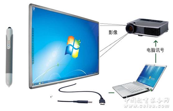 交互式電子白板由硬件電子感應白板(White Board)和軟件白板操作系統集成。它的核心組件由電子感應白板、感應筆、計算機和投影儀組成。電子感應白板是一塊具有正常黑板尺寸、在計算機軟硬件支持下工作的大感應屏幕,其作用相當于計算機顯示器并代替傳統的黑板。電子感應筆承擔電子白板書寫筆和計算機鼠標的雙重功用,其作用代替傳統的粉筆。教師或學生直接用感應筆在白板上操作(相當于傳統教學中師生用粉筆在黑板上操作):寫字或調用各種軟件,然后通過電磁感應反饋到計算機中并迅速通過投影儀投射到電子白板上。白板操作系統是存在于計算機中的一個軟件平臺,它不僅支撐人與白板、計算機、投影儀之間的信息交換,而且它還自帶一個強大的學科素材庫和資源制作工具庫,并且是一個兼容操作各種軟件的智能操作平臺,教師可以在白板上隨意調用各種素材或應用軟件教學。白板集傳統的黑板、計算機、投影儀等多種功能于一身,使教師使用非常方便。 交互式電子白板也支持復印,將電子白板直接與打印機連接,通過特定的白板筆進行板書,需要打印時,只需按下面板上的打印鍵即可實現彩色或黑白打印。還可以作為教學電子白板使用,將電子白板與計算機相連,此時的電子白板就相當于一個面積特別大的手寫板,可以在上面任意書寫、繪畫并即時的在計算機上顯示,文件保存為圖形文件。此功能一般需要一個專用的應用程序支持。如果通過特定的應用程序,交互式電子白板就可以通過網絡與其他辦公室、會議室進行交流,實現網絡會議及遠程教學。 交互式電子白板按原理可以分為五大類:電磁感應、紅外、超聲波、電阻壓感、CCD等。 |