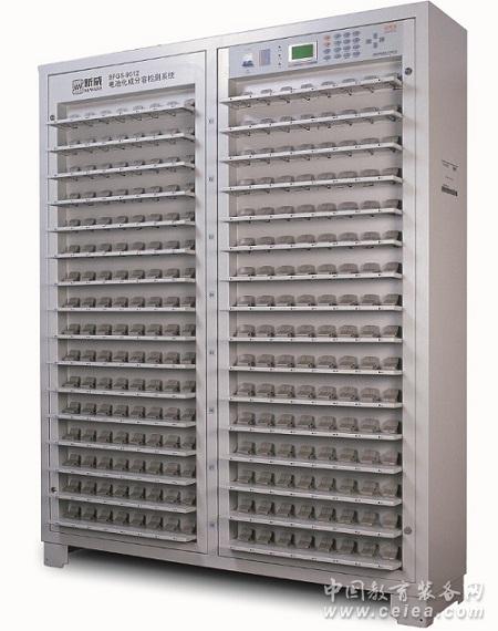 產品詳細介紹新威BFGS9512電池化成分容檢測系統 廠家直銷 新威爾,新能源,新未來 BFGS9512系列電池化成分容檢測柜擁有512個通道,想你所需,提高檢測效率,你的專屬檢測設備。 BFGS 電池化成分容系統是由上位機、中位機及下位機組成。上位機由一臺計算機及客戶端控制軟件與數據分析軟件構成。中位機由單片機及鍵盤、顯示屏組成下位機采用模塊化設計,方便維護。支持多工步設置方案,電池反接自動巡檢,自動化的電流、電壓校準功能,曲線與數據分析功能強大,支持用戶自定義導出測試數據報表。 BFGS-9512 系列適用于鋰聚合物電池的化成與分容檢測,也可作電池循環壽命測試。 設備量程:電壓5V,電流2A; 通道數量多,支持512CH; 夾具類型:探針夾具 采用網絡聯接SQL數據庫,集中控制相聯多臺機柜(最多可連250臺); 液晶中文顯示,操作簡單,方便校準; 通道不獨立,整排工步保持一致; 可以在柜上獨立操作所有功能; 具備自動巡檢功能; 斷電保護,來電后斷電自動接續; 各通道獨立恒壓源、恒流源,電流電壓實時采樣,恒流轉恒壓無擾動連續切換; 無繼電器:無機械磨損,無誤操作; 無電位器:抗震,精度穩定; 硬件工藝先進、穩定耐用; 自動分配通道地址,方便維修。 BFGS電池化成、分容檢測系統由下位機(電池測試單元)、中位機(下位機控制與網絡通訊模塊)以及上位機(數據庫和控制軟件)構成,適合于大規模的鋰電池、鎳氫、鎳鎘電池的化成與容量分選