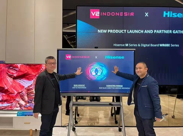 本次發布會海信印尼公司和V2聯合發布了海外最新款海信會議平板WR6BE系列以及M系列數字標牌產品。自新冠疫情以來,印尼市場智能會議平板備受歡迎,用戶可通過視頻會議實現遠程溝通。海信會議平板取代了以往傳統白板擦寫,采用行業領先的全貼合工藝,4K超清屏,集書寫、無線傳屏、視頻會議為一體,滿足了商務環境下對遠程會議的需求。印尼公司B2B銷售總監Mr.Pangaji在發布會中表示:“自2021年以來,我們一直與印尼V2合作智能交互會議平板,今年M系列標牌的合作使雙方都看到一個可以共同開拓的市場機會,為印尼市場創造更多附加值。”
