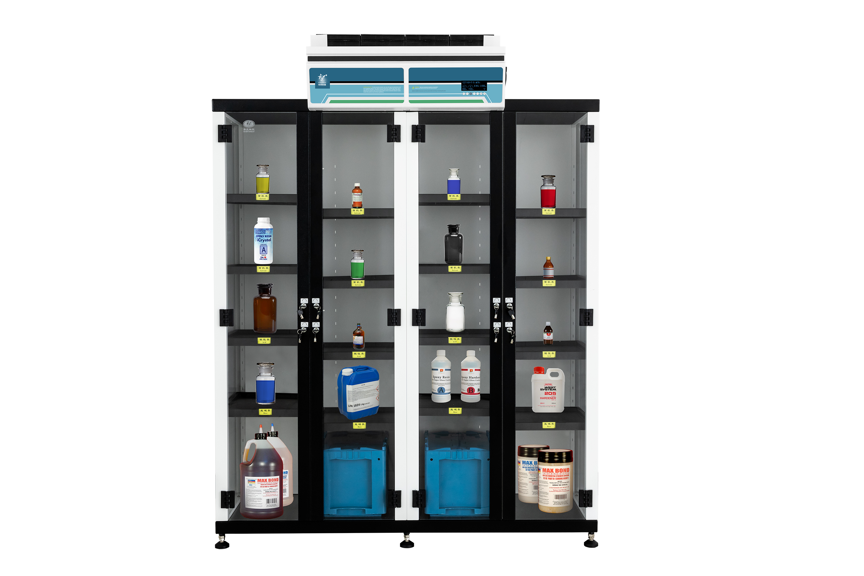 產品詳細介紹基本參數 尺寸(mm): 內:1596*470*1752 外:1600*525*1960-2362 空氣處理量:240m3/h 柜內體積:1.2m3 儲存容量:340瓶(每瓶500ml) 盛水盤:30L *層板承重:50kg 空氣交換率:200times/hour 總功率:30watt 電流:0.36A 音量:≤50dba 電壓/頻率:220V/50Hz 材質: 1.2mm鍍鋅鋼板,涂有抗酸堿的環氧樹脂涂層,承重部件采用3.0mm加厚鍍鋅鋼,門體:鋁合金嵌5mm厚高品質透明亞克力,內設暗藏式永磁磁體 鹽酸盒:PP材質儲存強酸(400*300*285mm) 鹽酸盒存放容量:12瓶/500ml 磁性標貼:化學品種類標識 前門板:雙門,尺寸400寬*1735mm高,鋁合金四面鑲嵌高品質亞克力門板(厚度20mm) 門把手:4種樣式可選(黑色,白色,立式,大拉手) 可調層板:承重50kg,均勻通風孔可調層板20塊 *LED顯示屏:超大LED智能顯示屏,顯示柜內溫度,風機轉速,過濾器壽命倒計時,過濾器出風口和室內空氣TVOC濃度(可選) *室內空氣VOC監測器:24小時實時在線監測室內空氣TVOC濃度并顯示PPM值(可選) *過濾器飽和監測報警器:24小時實時在線監測過濾器出風口TVOC濃度并顯示PPM值(可選) *風機轉速調節:可手動調節風機轉速,保證最佳風速 盛水盤:30L容量,附帶吸附墊 風機:24伏電流,美國進口風機,性能穩定,超靜音,無刷電機 接口:抗電磁干擾電源線。 過濾模塊:聚丙烯(PP材質) 門鎖:2把鎖配4把鑰匙; 隔板:鍍鋅鋼板,涂有抗酸堿的環氧聚酯涂層,隔開不兼容化學藥品 開合方式:雙門; 層板盛水量:≥30kg; 層板承重:≥50kg 過濾器型號可選: YJ型過濾器,主要針對有機氣體 TY型過濾器,對酸性氣體和有機氣體吸附能力強 HEPA過濾器,H14,針對粒子過濾器,對大于0.3μm的粒子,過濾效率達99.995%。 |