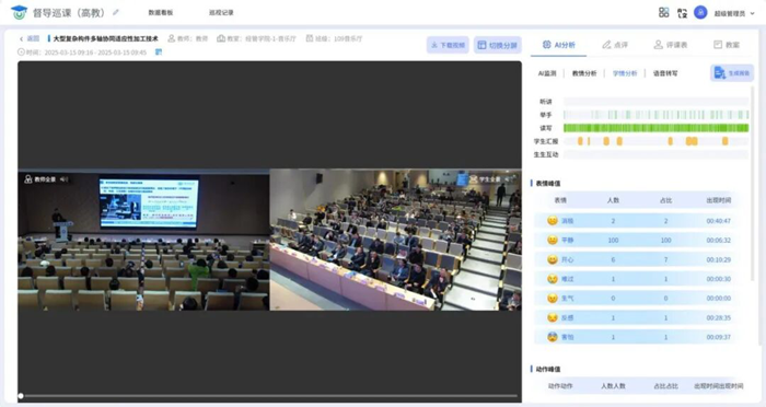 文香智慧督導(dǎo)巡課系統(tǒng)深度融合多種AI大模型,為教學(xué)督導(dǎo)工作帶來革命性變革。系統(tǒng)通過自動(dòng)化處理海量巡課數(shù)據(jù),實(shí)現(xiàn)快速分類、整理和分析,大幅提升數(shù)據(jù)處理效率。教務(wù)管理人員通過可視化界面隨時(shí)隨地查看課堂教學(xué)實(shí)況,系統(tǒng)支持多課堂同時(shí)巡視,動(dòng)態(tài)統(tǒng)計(jì)到課率、前排就坐率、抬頭率等關(guān)鍵指標(biāo)。督導(dǎo)人員可及時(shí)獲取精準(zhǔn)的巡課分析報(bào)告,為教學(xué)決策提供有力支持,推動(dòng)教學(xué)質(zhì)量持續(xù)提升。
