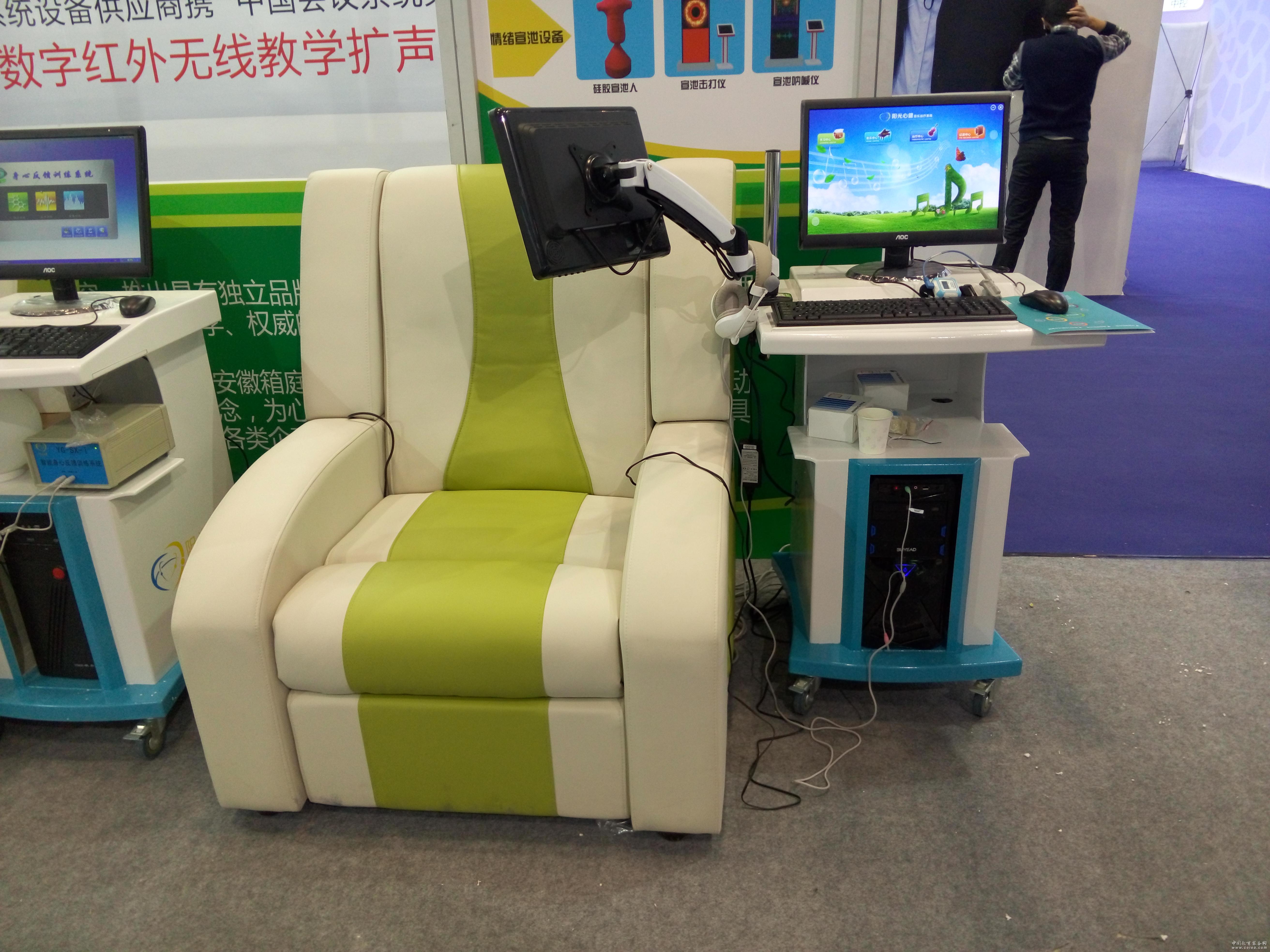產品詳細介紹三通道反饋型音樂放松椅PsyShine簡介:(一)、反饋型音樂放松椅原理人類的意識活動是受大腦的潛意識活動影響,我們可以通過腦波、肌電、皮溫、皮阻、肌張力、呼吸、脈搏、血壓等生理指標進行客觀的反映。我們正是采用了這一原理,根據人意識和肌肉緊張及放松時,生理指標的變化及特征,來控制音樂治療刺激源的構成、強度、時間及方式。作為醫院心理科心理治療的輔助手段,音樂治療已被國內外心理治療專業機構廣泛應用。而我公司最新研發的智能反饋型音樂放松治療系統,克服了以上的問題和缺點,已開始在國內許多專業心理治療機構、學校、公安司法部門和企業采用。(二)、反饋型音樂放松椅產品特點音樂治療導師專業設計及研發,改變原有的音樂治療系統從音樂的角度設計,創新了心理治療新系統—趙曉明音樂治療導師進行研發、生產。特色放松治療音樂a) 經過專業音樂治療導師精心設計并選擇的治療用音樂庫。b) 獨一無二的音樂治療體系設計音樂智能跟蹤、自動調整將根據被治療者的生理指標變化性質和程度,由系統自動選擇放松時間,類型、整體音樂構成,刺激無效時的自動調整。動態實時監測系統動態實時的將放松對象的生理指標,以數值、曲線方式反饋到監測屏上。方便咨詢師能夠馬上了解放松對象對音樂的反應,從而能對放松對象進行一個有效的客觀評估。儲存歷次放松數據系統后臺數據庫可以將放松對象歷次的放松數據儲存起來,可以進行前后放松效果的數據對比、大批量數據的專業分析等研究性工作。圖形文字報告報告以圖形加文字方式顯現,清晰的記錄著放松對象整個放松過程的生理指標數值和曲線,通過這些數據咨詢師可對放松效果進行客觀的評估,并書寫在報告上直接打印出來。(三)、反饋型音樂放松椅適應人群1、工作壓力壓力者2、失眠3、有焦慮傾向、抑郁傾向、神經衰弱者(四)反饋型音樂放松椅配置1、音樂放松椅一臺2、電腦一臺(操作臺自配)3、15寸觸摸顯示4、 配備催眠、空靈放松、自然等音樂包共200首經過音樂治療導師精心分析并設計的音樂治療方案醫院用三通道反饋型音樂放松椅PsyShine |