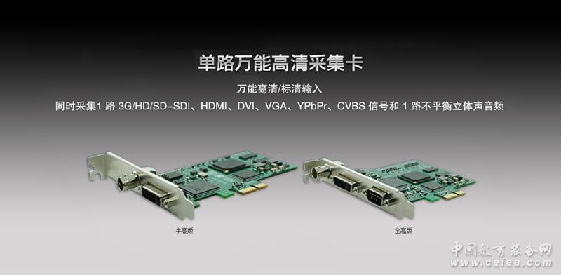 1.萬能高清/標清信號輸入 通過KC100M您可以采集市面上常見的各類視頻信號,包括:SDI 信號(支持 3G/HD/SD-SDI),HDMI、DVI 等高清數字信號,VGA、YPbPr 等模擬高清信號、S-video、CVBS 等視頻信號。KC100M幫助您輕松采集各種設備的信號,為您解決視頻信號采集類型有限的后顧之憂。
