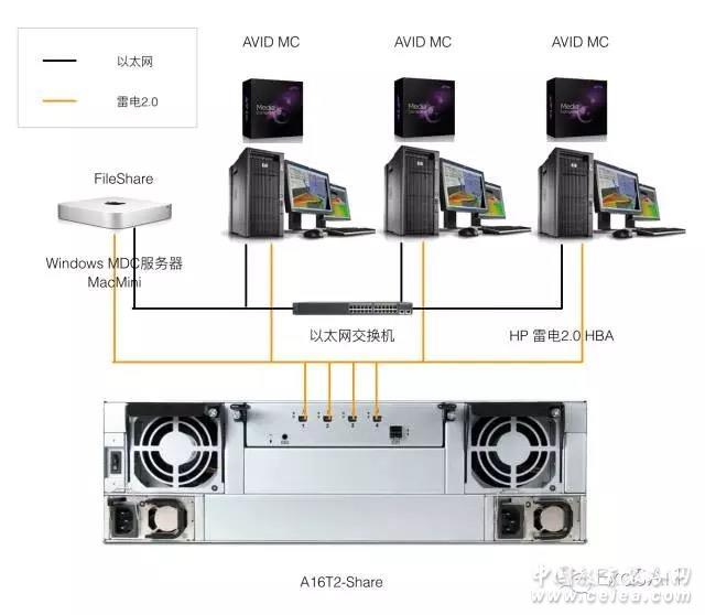 產品詳細介紹avid mc超高清小型非編網 accusys exasan avid mediacomposer是一個非常不錯的非編軟件,很多用戶都很熟悉它。它被電視臺、制作公司等大型電視或電影節目后期制作中廣泛應用,但基本都是大型mc非編網居多。對于很多小型用戶,比如:政府、企事業單位、學校等,客戶端數量有限,如果只是單機使用,面臨著前期拍攝分辨率越來越大,素材量越來越多,視頻素材無法共享,素材調用非常耗時,又不可以協同工作等問題。如何才能擁有一個讀寫性能高,簡單及方便、即可共享素材又可協同工作、且價格有不貴的小型mc非編共享網絡成了這些擁有2-3臺avid mc用戶的煩心事。 如今,這些用戶有福了。今天將為你們介紹一款全新的2-3臺avid mc超高清小型非編共享網絡。 此mc非編共享網,采用了accusys獨特的雷電共享存儲系統a16t2-share存儲系統,其存儲控制器上內嵌了小型雷電交換機,對外提供了4個雷電2.0接口,每個接口20gb讀寫帶寬,實際讀寫性能在1000mb/s左右。總存儲提供1800mb/s左右的讀寫性能。mc非編主機采用了hp z840或聯想工作站,用戶只需要在hp 840上配置一張雷電2.0的主機卡(此卡可以從hp經銷商處訂購),通過此卡及10m的雷電線纜(30m和60m可選)直接連接到a16t2-share上。再配置一臺macmini或一臺hp工作站作為mdc服務器(san管理服務器),每臺mc主機再配置以太網網絡,并連接到同一個以太網交換機上,mdc服務器和mc主機都配置一套fishare文件共享軟件。這樣一套小型超高清mc非編網絡就搭建完成。 三臺mc非編工作站同時工作時,每臺性能都500-600mb/s的讀寫性能。你可以同時編輯高清、超高清、2k甚至部分4k的視頻文件。根據您所需要的存儲容量,可以配置不同的企業級硬盤,目前最高支持10tb企業級硬盤,一臺a16t2-share容量為160tb,不僅如此,因為a16t2-share還支持3臺jbod擴展柜,總支持的存儲容量為640tb。 簡單方便的三臺mc非編共享網絡如此大身材,小投入,您無需再為共享編輯發愁了。解決方案詳細搭建方式和價格,請咨詢accusys中國和accusys代理商。 |