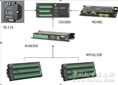 系統組成: 系統核心組件為:CR1000數據采集器、AVW200振弦模塊、AM16/32B擴展板,配件為供電電源、存儲槽CFM100及存儲卡、通訊模塊MD485及機箱等,可另配CR1000KD手持式顯示器,用于巡測和選測。 |