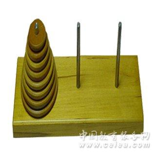 產品詳細介紹河內塔由八個不同直徑的圓盤與三個直立的小柱組成。圓盤中心是空的,可以放在小柱上。圓盤從大到小依次放在左側的一個柱上,似塔形。實驗要求圓盤移到右側的小柱上。移動過程中,只有頂部的一個圓盤可以移動,并且要求總是大圓盤在下,小圓盤在上。下圖左邊表示初始狀態,八個圓盤在A號小柱,通過每次移動一個圓盤要求達到圖右邊的目的狀態,即八個圓盤在C號柱。