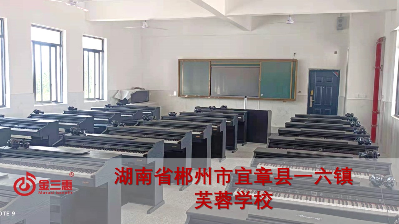 湖南省郴州市宜章縣一六鎮(zhèn)芙蓉學(xué)校的數(shù)字電鋼琴教室開始使用,本校數(shù)字化音樂教室由北京金三惠科技有限公司負(fù)責(zé)提供、安裝、培訓(xùn)。