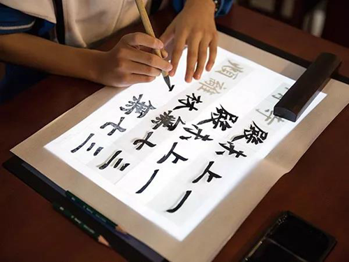 華文眾合2016年推出專利產(chǎn)品交互式數(shù)字臨摹臺,抗壓、耐磨、防水、自動調(diào)節(jié)亮度,鋪上一張宣紙,用毛筆蘸著墨汁就可摹出讓人信心大增的字,從最初學、練書法開始,從始至終都使用傳統(tǒng)的筆墨紙,養(yǎng)成一致的筆觸感,脫離平常練習的教室也能寫出漂亮的毛筆字。