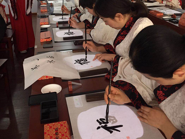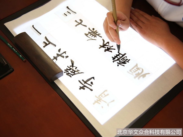 有意思的是,北京華文眾合書法實(shí)驗(yàn)室在推送智慧書法平臺(tái)時(shí),不光是為學(xué)校引進(jìn)設(shè)備,還負(fù)責(zé)教室室內(nèi)配套裝修設(shè)計(jì),將書法教室整體氛圍與書法平臺(tái)融合起來,古香古色,環(huán)境清幽,再加上每張平臺(tái)上裝備齊全的硯筆紙墨,既充滿時(shí)代感,又不失傳統(tǒng)藝術(shù)底蘊(yùn),非常吸引年輕人加入其中。