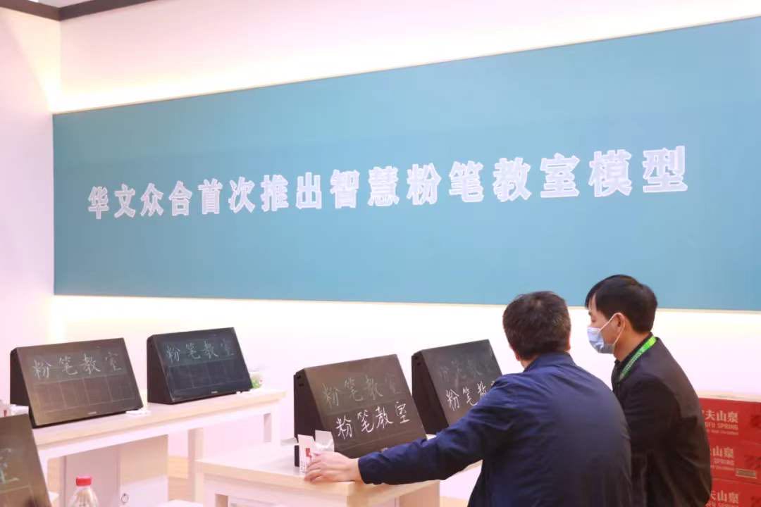 中國教育裝備行業協會副會長夏國明參觀體驗華文眾合智慧粉筆教室