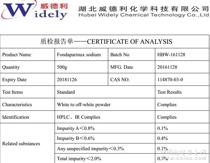 于一體的專業化工原料公司,生產銷售的磺達肝癸鈉產品質量穩定可