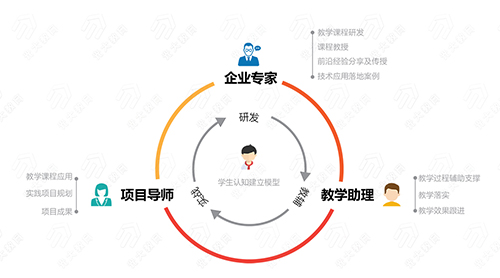 傳統(tǒng)的教學(xué)模式是老師教、學(xué)生學(xué)、學(xué)會(huì)后再去做,現(xiàn)在轉(zhuǎn)變?yōu)槠髽I(yè)需要做什么,學(xué)生學(xué)什么、老師教什么的新模式探索,光大教育軟件研究院采用三師教學(xué)模式,在職企業(yè)工程師授課、助教全程跟進(jìn),形成獨(dú)有的教學(xué)特色。