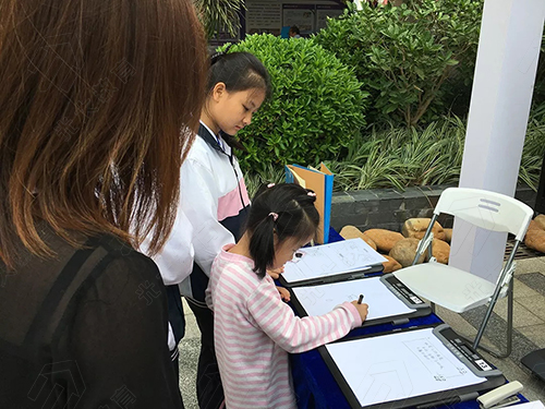 “我可以試試嗎?”參與創客節競賽的學生拿起電子筆,帶著興奮與期待咨詢展位上的工作人員。在光大教育的展位前圍著不少的學生、老師、家長,不少人興致勃勃地在紙上寫寫畫畫,筆跡同步呈現在電子屏上,引起他們的驚嘆與好奇。