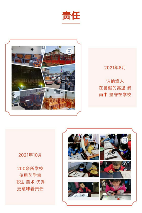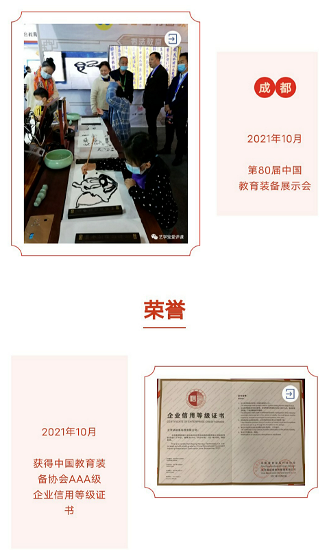 | 擁有自主開發(fā)的系列產(chǎn)品,涉及中國傳統(tǒng)文化書畫教室、老師成長(zhǎng)和提升的教研產(chǎn)品、增賦減負(fù)備授課工具、提升優(yōu)質(zhì)資源均衡的結(jié)對(duì)課堂。自主研發(fā)產(chǎn)品:課堂評(píng)價(jià)-愛評(píng)課、美術(shù)教絡(luò)系統(tǒng)-藝學(xué)寶、數(shù)字臨摹書法教室-藝學(xué)寶、互動(dòng)結(jié)對(duì)課堂、名師專遞課堂。配套硬件產(chǎn)品:藝板繪畫屏、藝學(xué)寶書法臨摹全貼合屏,產(chǎn)品優(yōu)勢(shì):數(shù)據(jù)采集與運(yùn)用、互聯(lián)網(wǎng)+等創(chuàng)新運(yùn)用在教學(xué)和教研,助力英音美薄弱學(xué)科的師資水平提升和名師課堂發(fā)揮普惠作用。 |