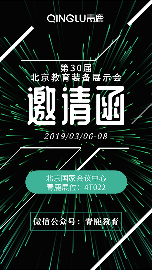 第30屆北京教育裝備展示會,將于2019年3月6日-8日在北京國家會議中心隆重舉辦,廣州青鹿教育科技有限公司將攜超強產(chǎn)品陣容亮相,歡迎領(lǐng)導(dǎo)和來賓蒞臨青鹿展位4T022。